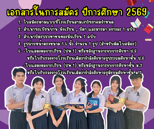 กำหนดการรับสมัครนักเรียนใหม่ประจำปีการศึกษา 2569 โรงเรียนสามเงาวิทยาคม